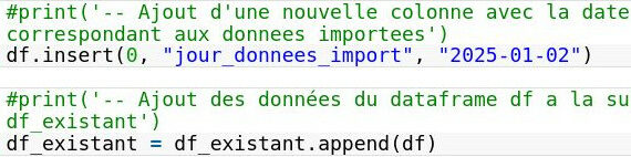 Pour ajouter des données dans un dataframe,plusieurs methodes existent selon le type d’operations à réaliser : Code d’exemple :